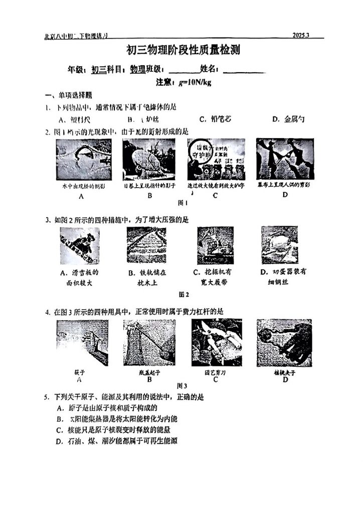 admw360教研组收集整理了2025北京八中初三零模物理试卷,分享给大家,快来下载复习吧。