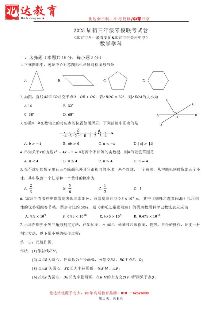 相关推荐:2025年北京初三零模试卷及答案汇总
