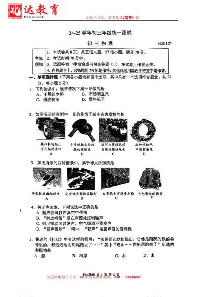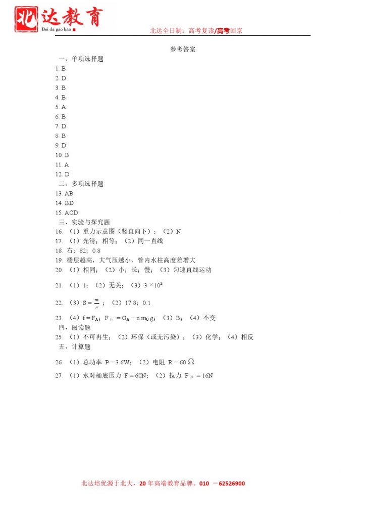 admw360教研组收集整理了2025北京三十五中初三零模物理试题及答案,分享给大家,快来下载复习吧。 北京admw360全日制学校,中高考复读,外地回京中高考 电话咨询:400-6168182 01…