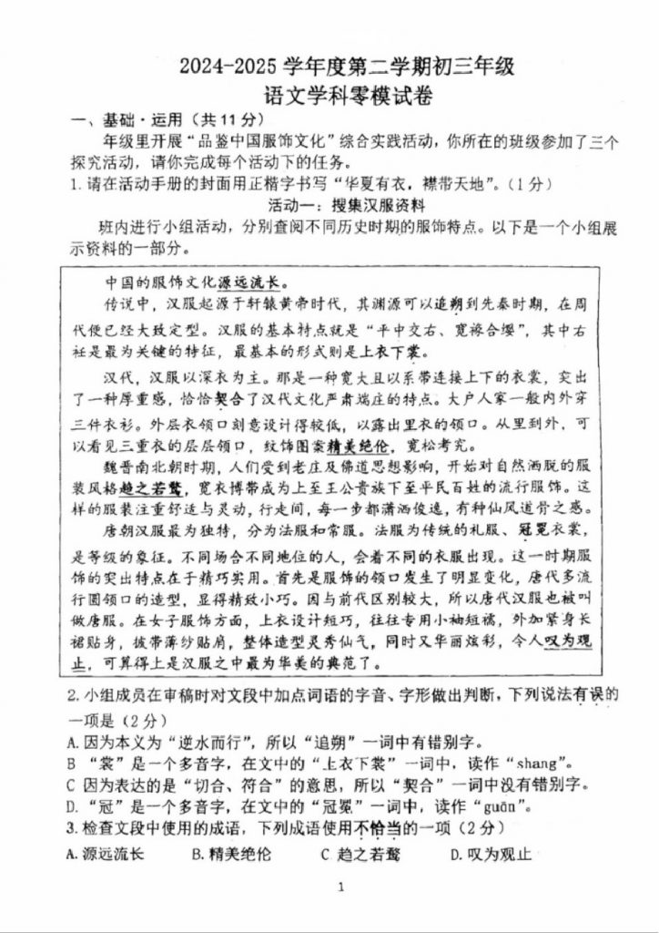 admw360教研组收集整理了北京育才学校2025初三零模语文试题,分享给大家,快来下载复习吧。
