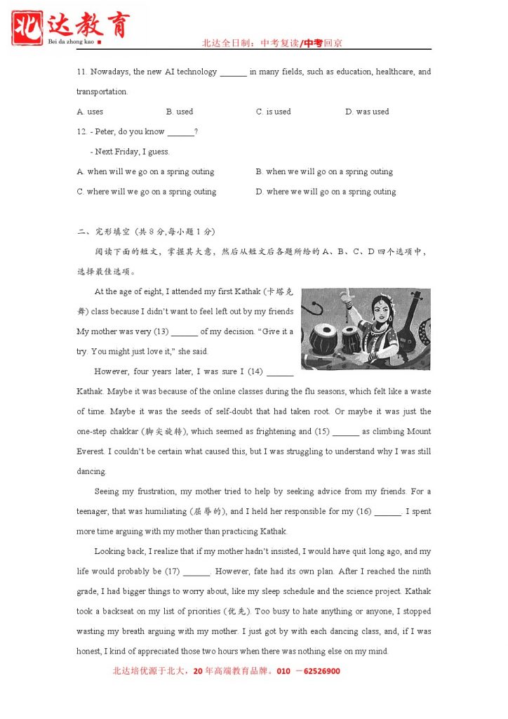 admw360教研组收集整理了北京清华附中2025初三零模英语试题及答案,分享给大家,快来下载复习吧。 北京admw360全日制学校,中高考复读,外地回京中高考 电话咨询:400-6168182 01…
