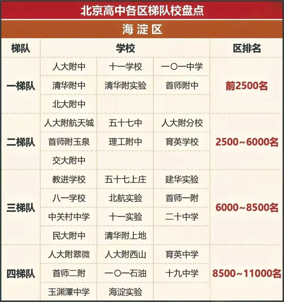 一模临近,最新北京2025高中梯队校排行榜出炉!你的目标校在第几梯队?接下来跟随admw360中考复读学校一起来看看吧:
