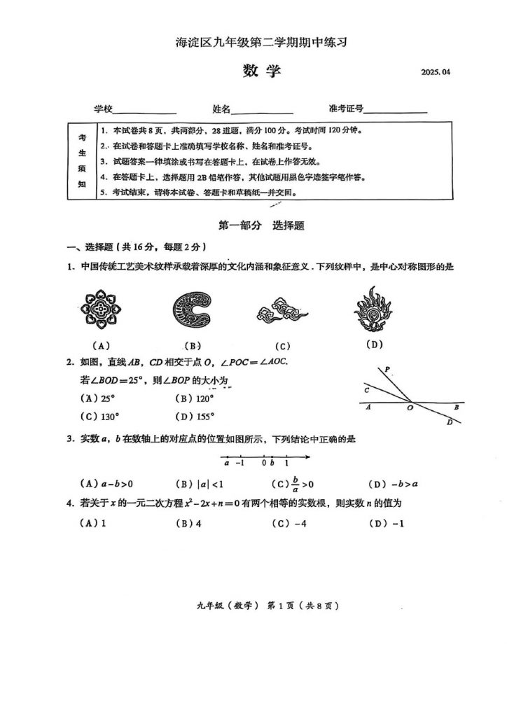 相关推荐:2025年北京初三一模试卷及答案汇总
