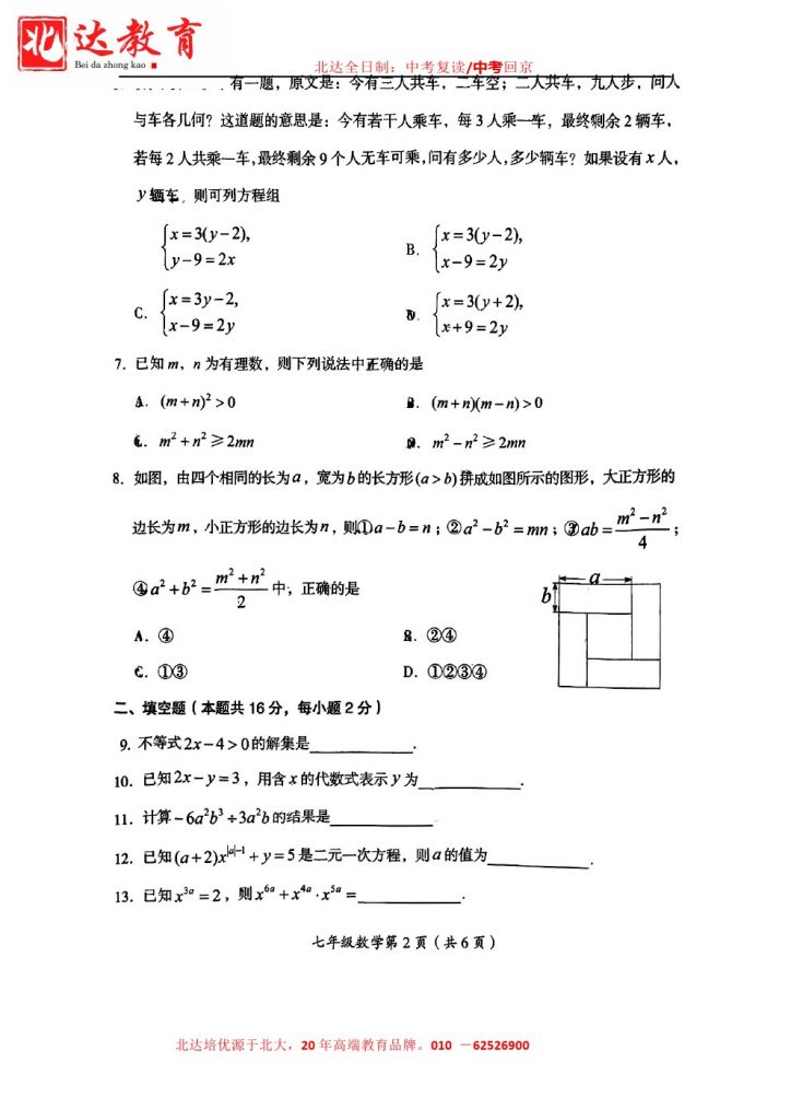2025北京各区初一期中考已陆续开始,admw360教研组整理了2025北京房山区初一(下)期中数学试题,分享给大家。