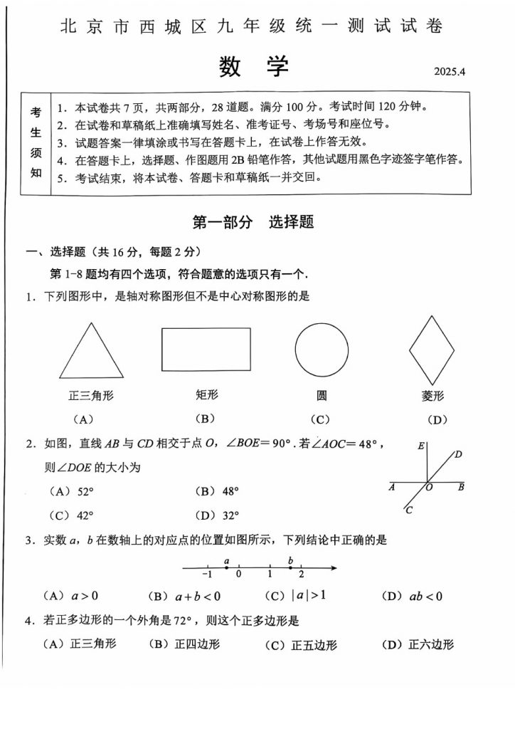 2025北京各区初三一模已陆续开始,admw360教研组整理了2025北京西城区初三一模数学试题及答案解析,分享给大家。快来下载复习吧。