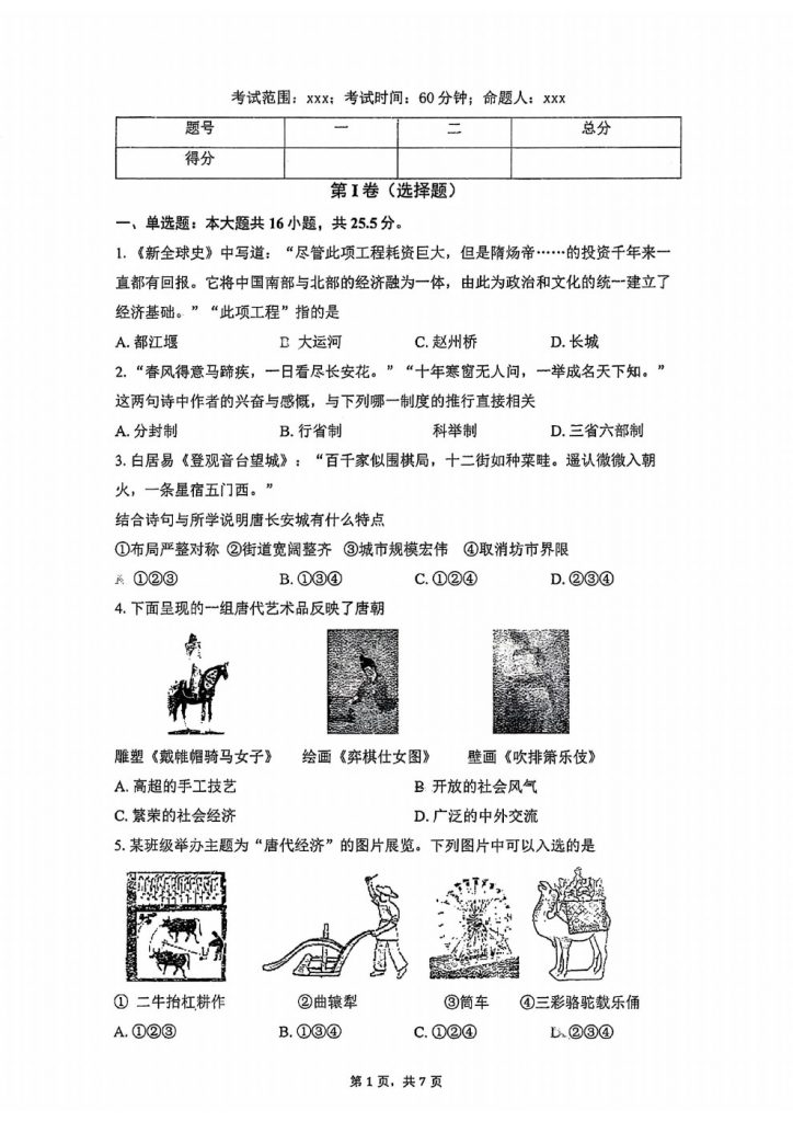 2025北京各区初一期中考已陆续开始,admw360教研组整理了2025北京五中分校初一(下)期中历史试题,分享给大家。