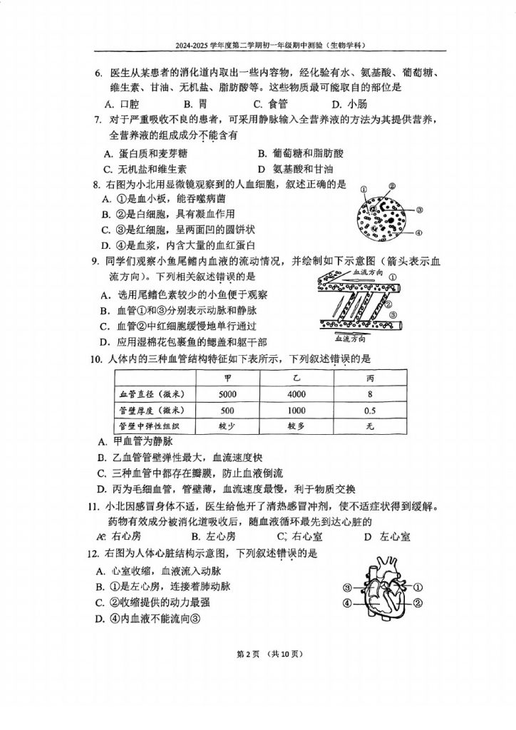 首页 初一试题 2025北京四中初一(下)期中生物试题
