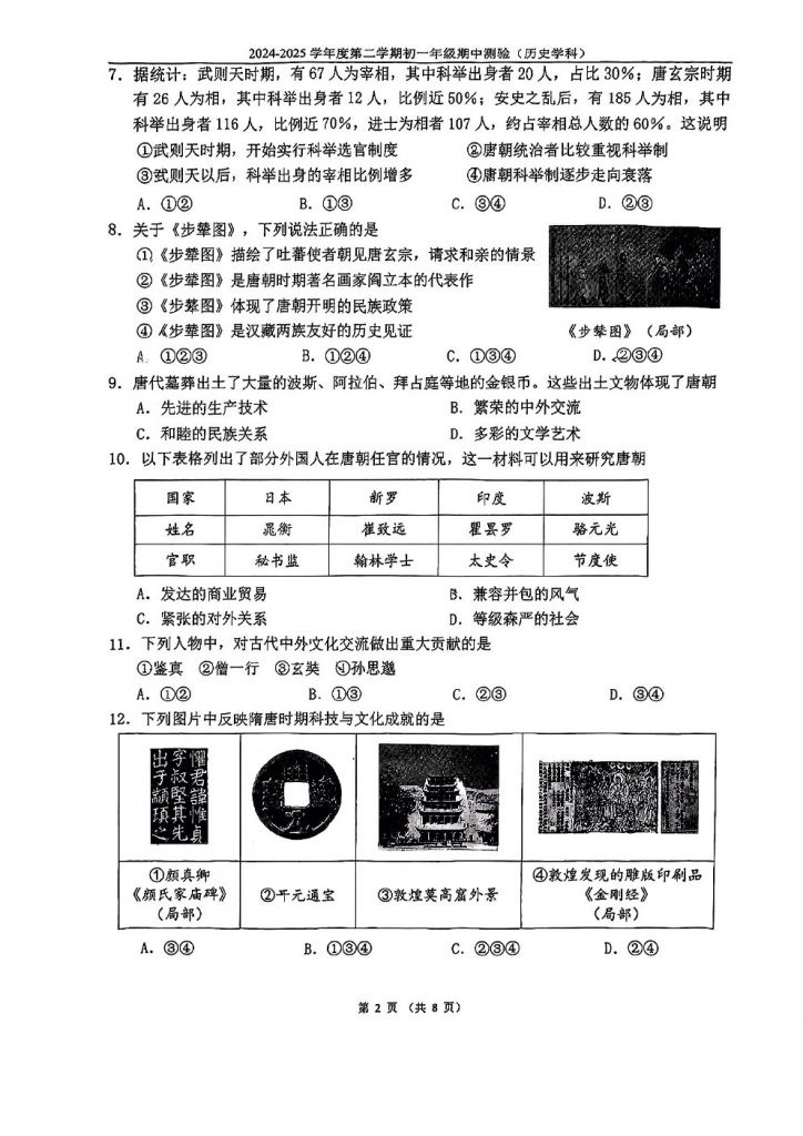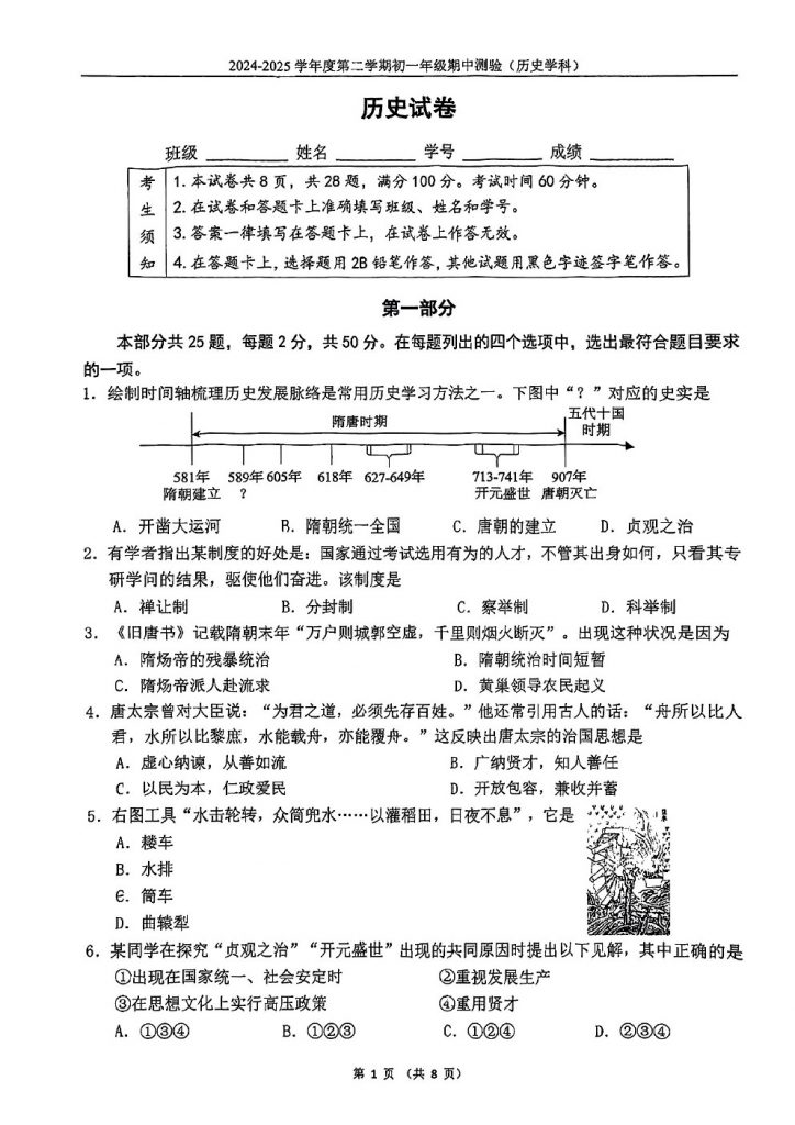 2025北京各区初一期中考已陆续开始,admw360教研组整理了2025北京四中初一(下)期中历史试题,分享给大家。