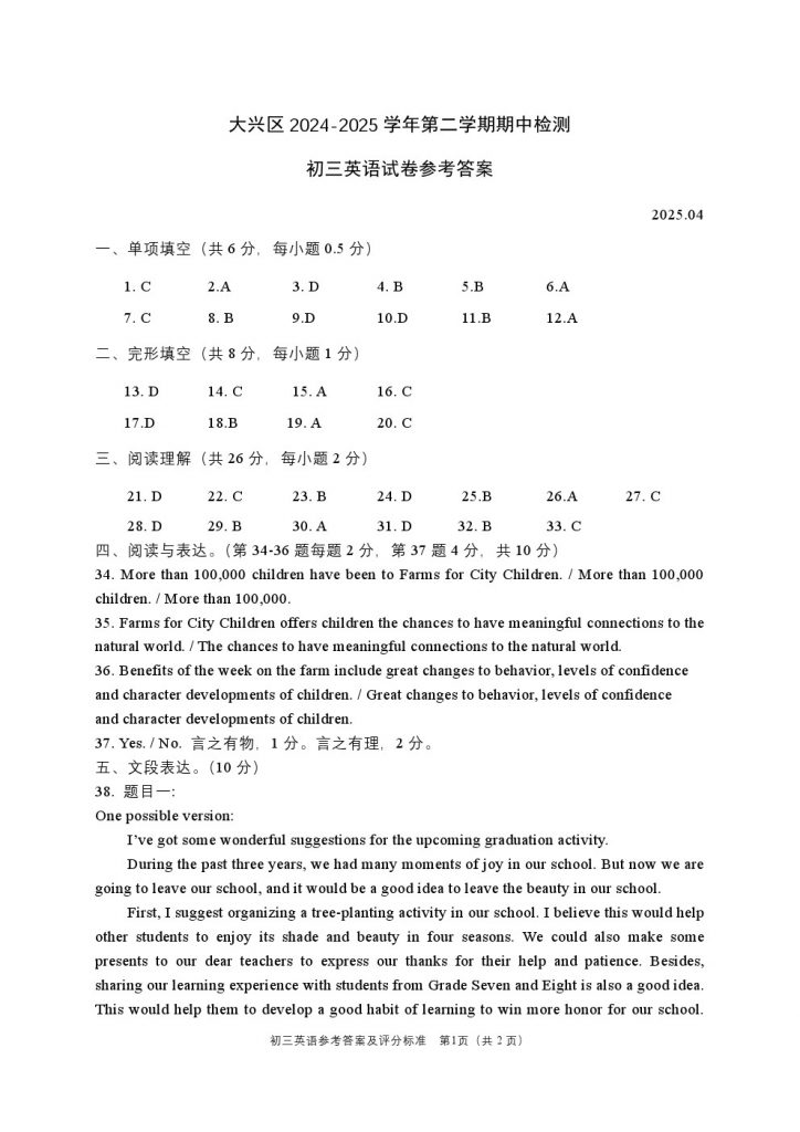 2025北京各区初三一模已陆续开始,admw360教研组整理了北京大兴区2025初三一模英语试题及答案,分享给大家。快来下载复习吧。