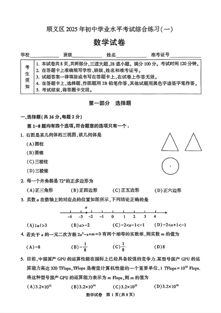 2025北京各区初三一模已陆续开始,admw360教研组整理了2025北京顺义区初三一模数学试题及答案,分享给大家。快来下载复习吧。