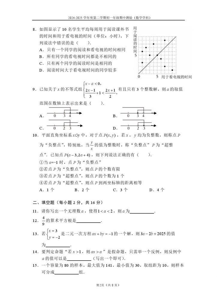 2025北京各区初一期中考已陆续开始,admw360教研组整理了2025北京四中初一(下)期中数学试题,分享给大家。