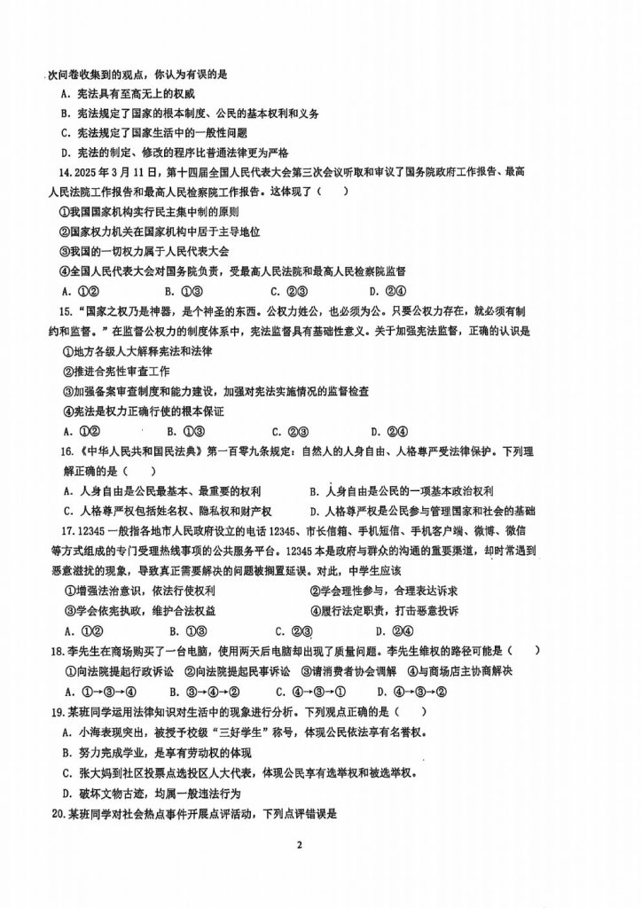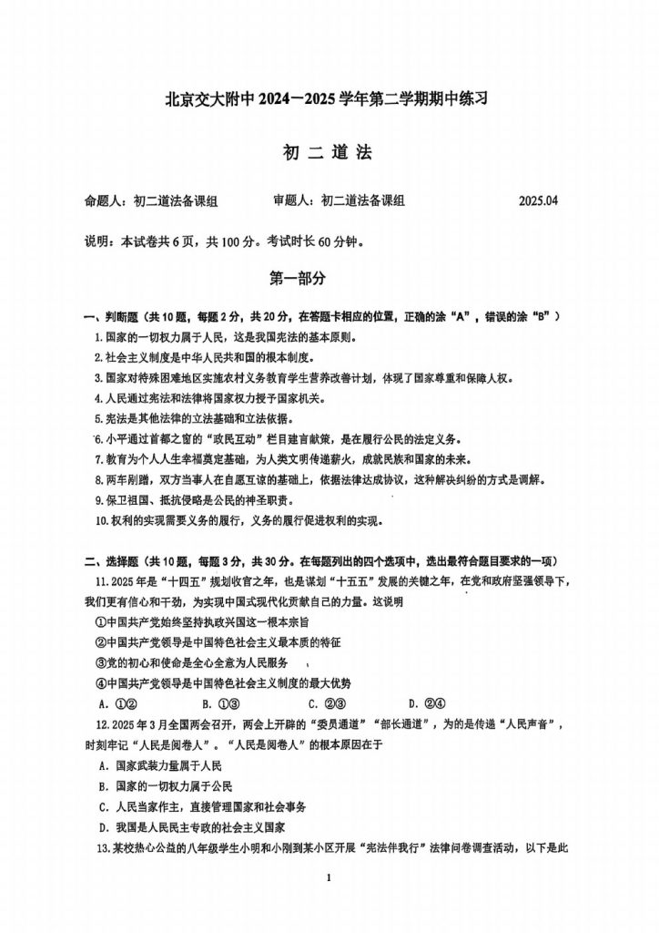 2025北京各区初二期中考已陆续开始,admw360教研组整理了2025北京交大附中初二(下)期中道德与法治试题,分享给大家。