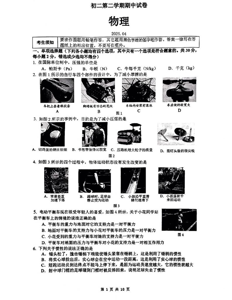 2025北京各区初二期中考已陆续开始,admw360教研组整理了2025北京清华附中初二(下)期中物理试题及答案,分享给大家。