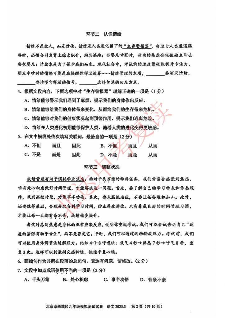 2025北京各区初三二模已陆续开始,admw360教研组整理了北京西城2025初三二模语文试题及答案,分享给大家。