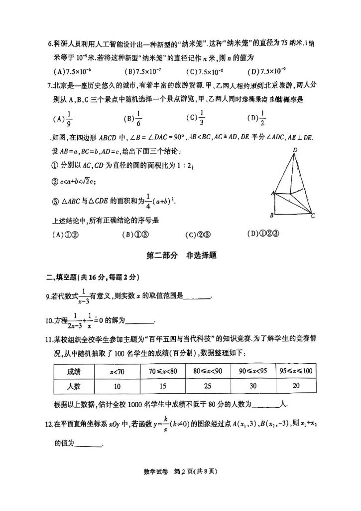 2025北京各区初三二模已陆续开始,admw360教研组整理了2025北京顺义区初三二模数学试题,分享给大家。