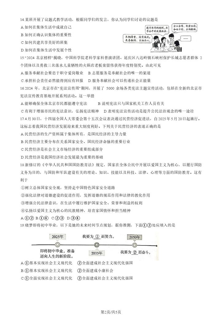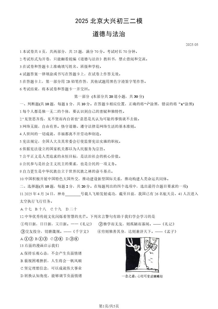 2025北京各区初三二模已陆续开始,admw360教研组整理了2025北京大兴区初三二模道法试题,分享给大家。