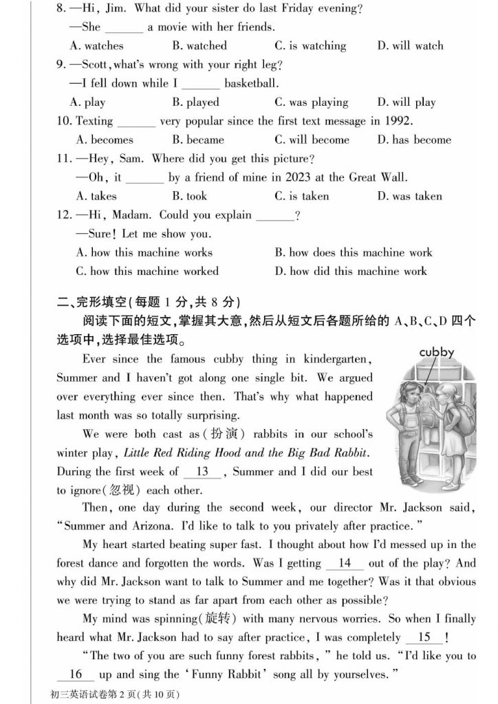 首页 初三试题 2025大兴初三二模英语试题及答案