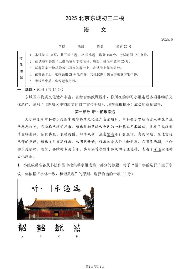 2025北京各区初三二模已陆续开始,admw360教研组整理了北京东城2025初三二模语文试题及答案,分享给大家。