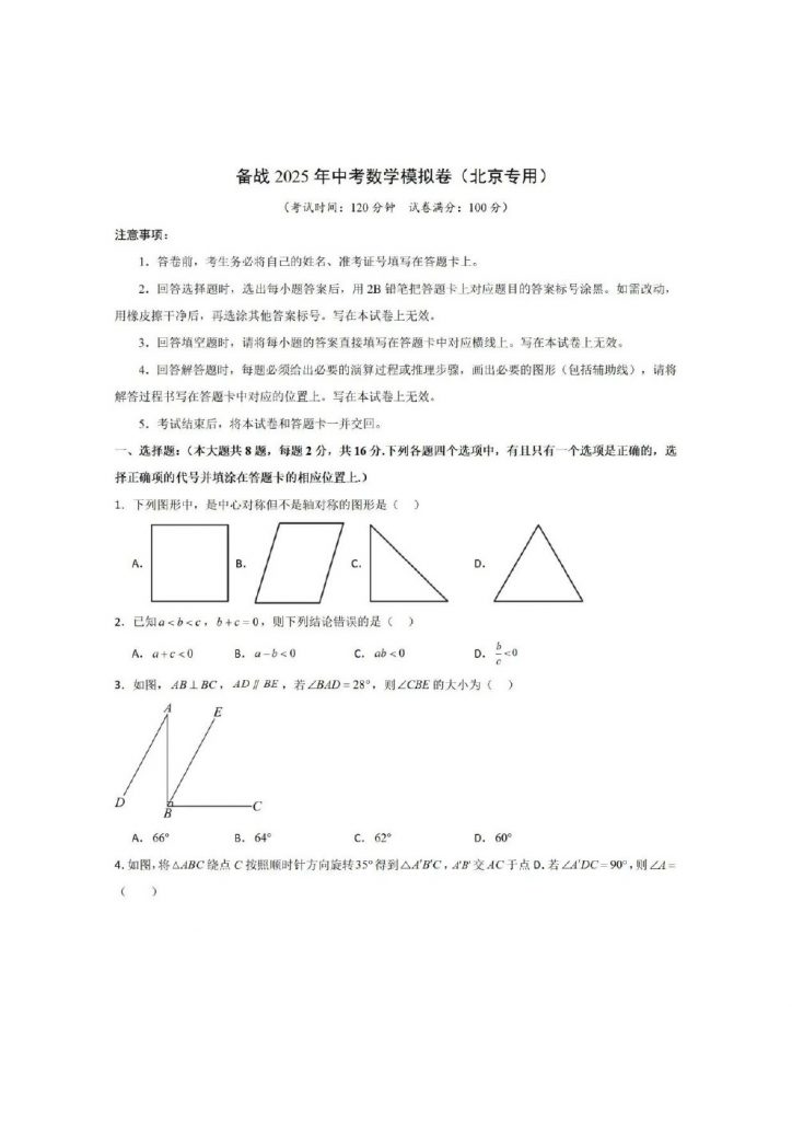 2025年北京中考还有十三天,中考开考前,我们整理了相关2025北京中考押题卷试题供大家下载参考,预祝各位考生考出理想的成绩!