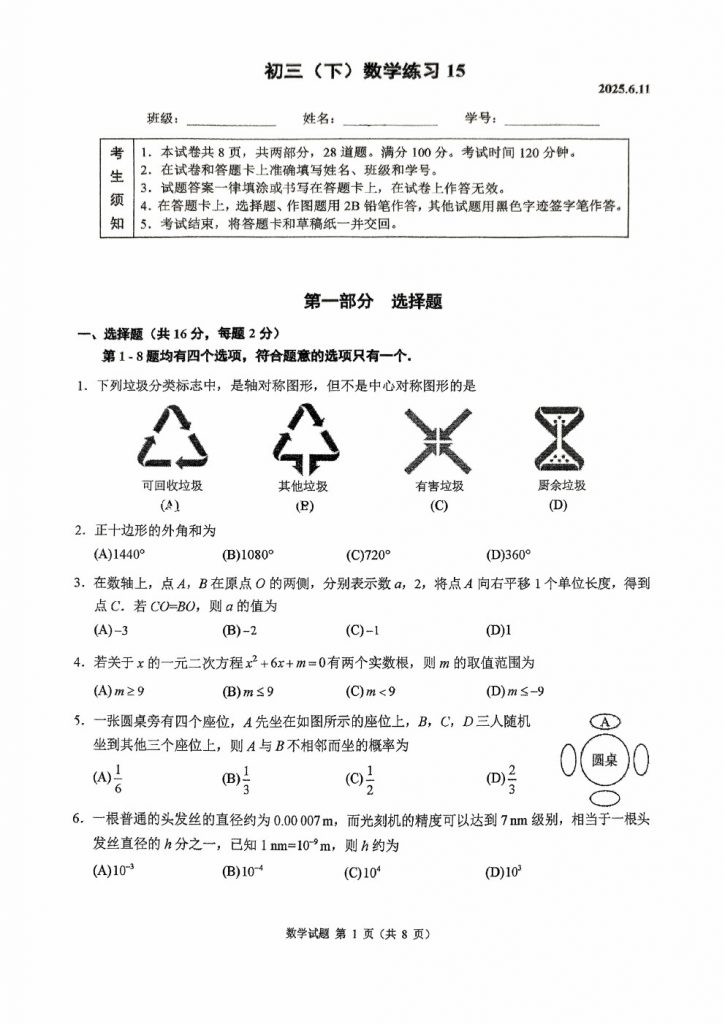 2025北京中考即将来临,admw360教研组整理了2025人大附中初三三模数学试题,分享给大家: