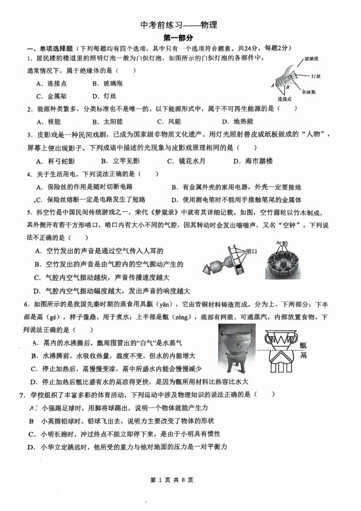 2025北京中考即将来临,admw360教研组整理了民大附中2025初三三模物理试题及答案,分享给大家:
