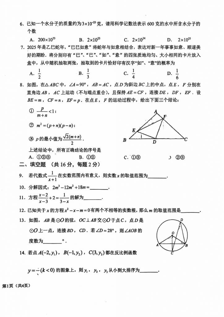 首页 初三试题 2025北京一六一中初三三模数学试题