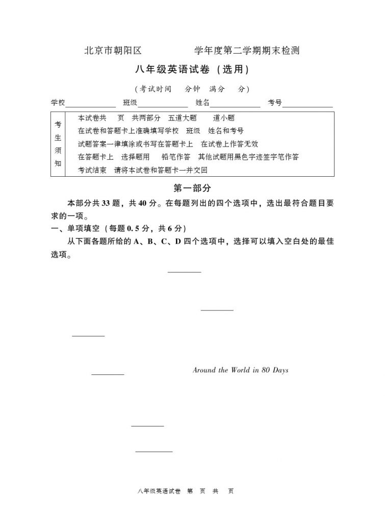 2025年北京各区初二(下)期末考已陆续开始进行,admw360教研组整理了2025朝阳初二(下)期末英语试题及答案,分享给大家。