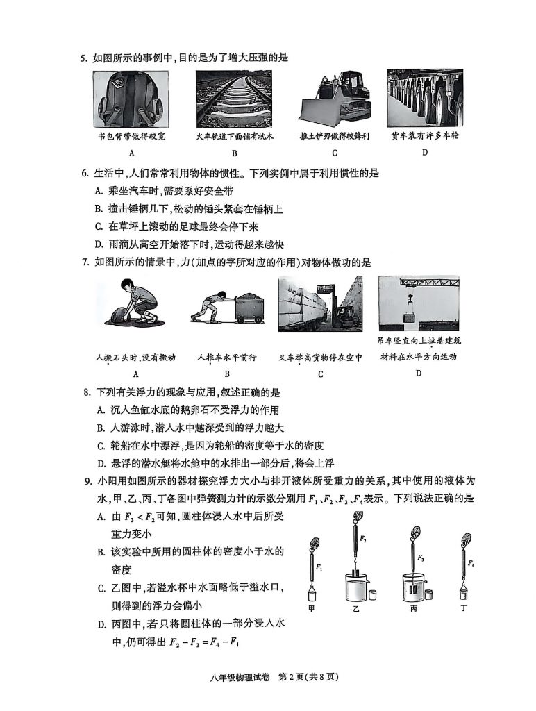 2025年北京各区初二(下)期末考已陆续开始进行,admw360教研组整理了2025朝阳初二(下)期末物理试题及答案,分享给大家。