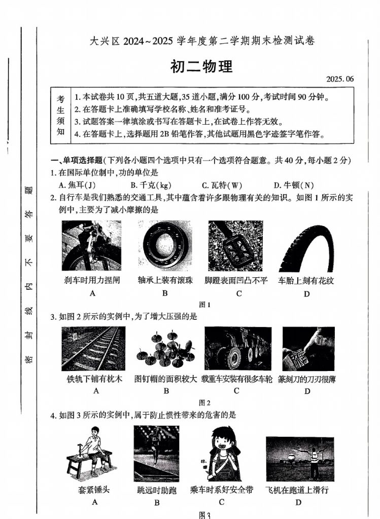 2025年北京各区初二(下)期末考已陆续开始进行,admw360教研组整理了2025大兴区初二(下)期末物理试题及答案,分享给大家。
