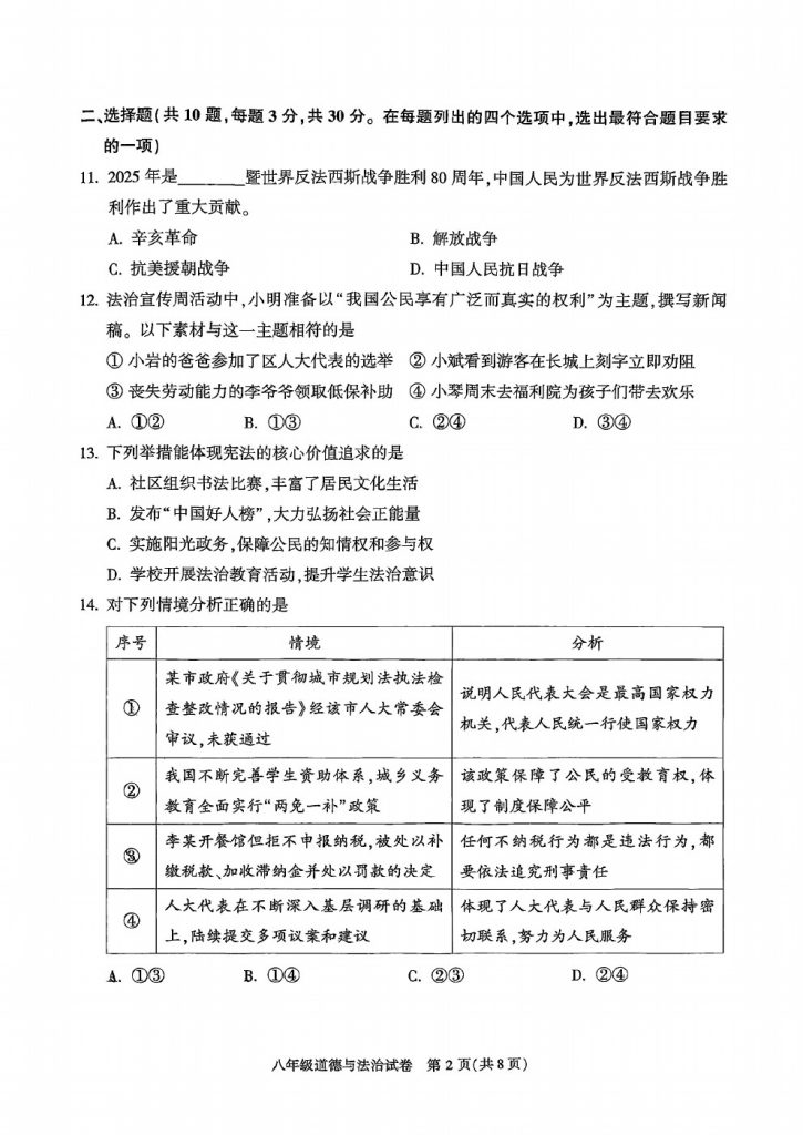 2025年北京各区初二(下)期末考已陆续开始进行,admw360教研组整理了2025顺义初二(下)期末道法试题及答案,分享给大家。
