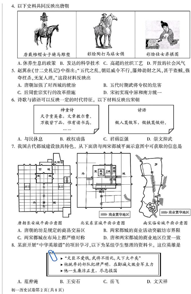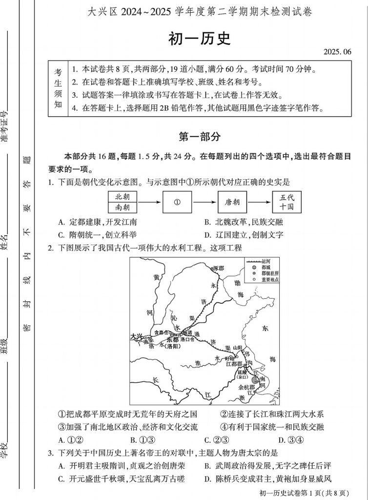 2025年北京各区初一(下)期末考已陆续开始进行,admw360教研组整理了2025北京大兴初一(下)期末历史试题及答案,分享给大家。