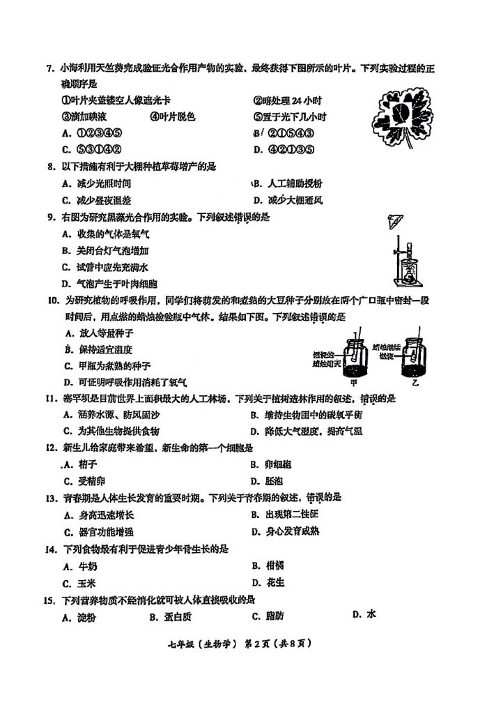 2025年北京各区初一(下)期末考已陆续开始进行,admw360教研组整理了2025北京海淀区初一(下)期末生物试题,分享给大家。
