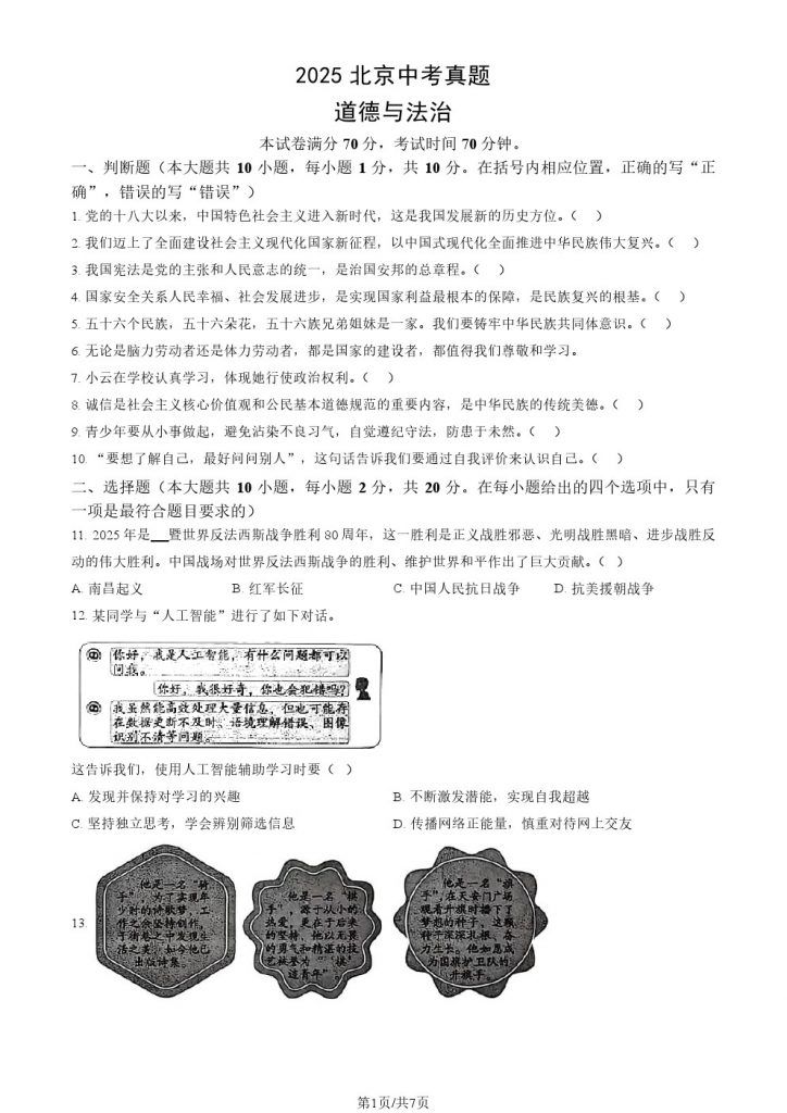 2025年北京中考已落下帷幕,试题及答案已出炉,admw360教研组更新了2025北京中考道法真题及答案,分享给大家: