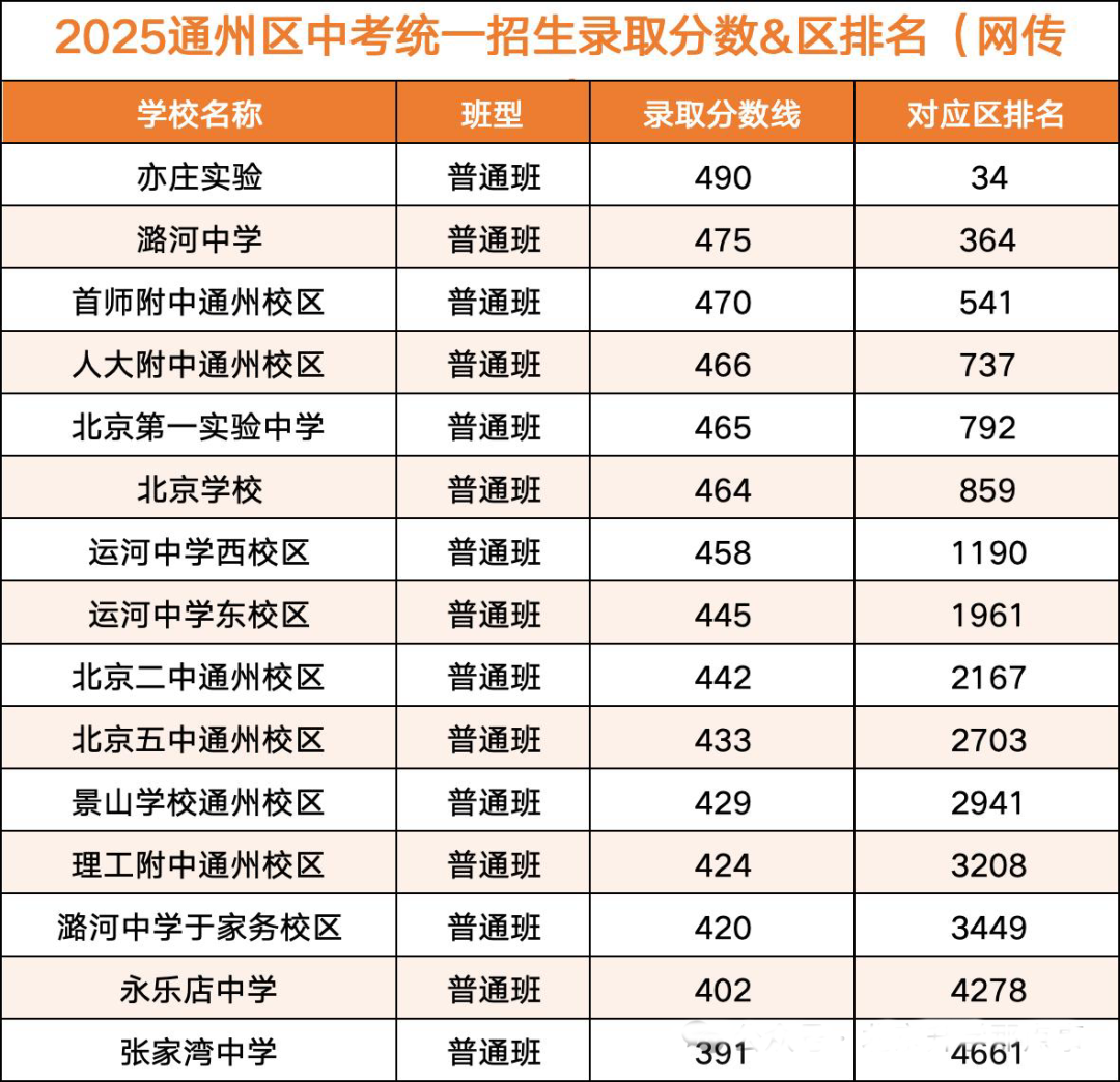 2025年中考录取分数线,因为各区都没有官宣中考录取分数线(因为官方不让发,现在都是往传版)admw360教研组目前收集整理的2025通州中招录取分数线&区排名(网传版),分享给大家了解参考,其中部分没有更新的学校分数线家长可以分享到评论区