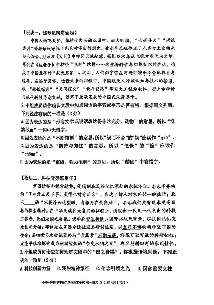 2025年北京各区初一(下)期末考已陆续开始进行,admw360教研组整理了2025北京二中初一(下)期末语文试题,分享给大家。
