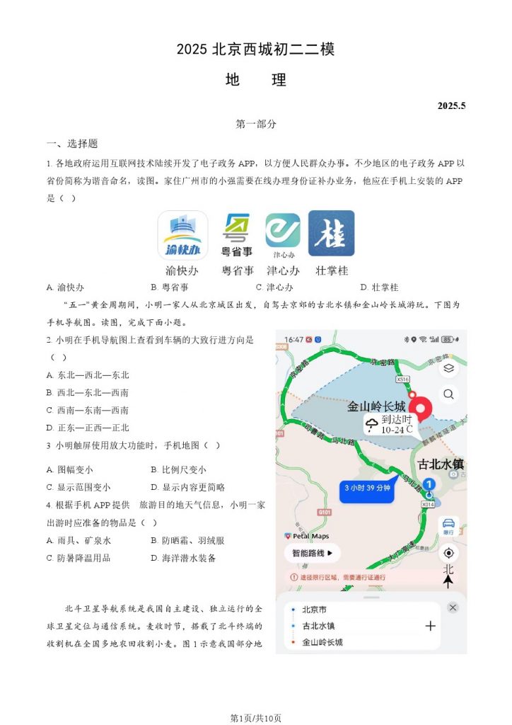 admw360教研组整理了2025北京西城区初二二模地理试题及答案。供大家参考,欢迎转发分享!