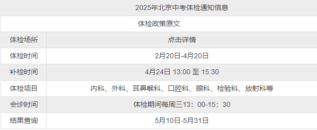 中考体检时间:2月20日至4月20日