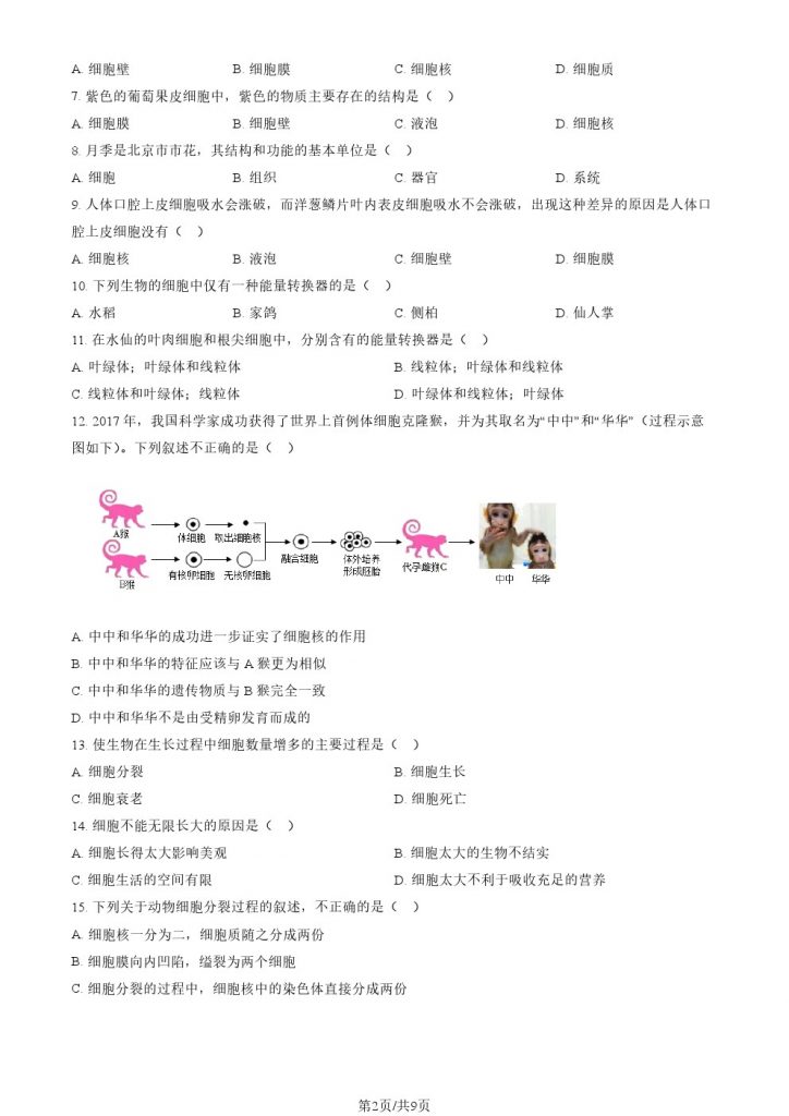 为方便大家对答案、下载练习等小编整理了2024北京西城外国语学校初一(上)期中生物试题及答案,需要的小伙伴赶紧下载练习起来吧: 2025admw360中考复读全日制,应届生全日制,外地回京全…