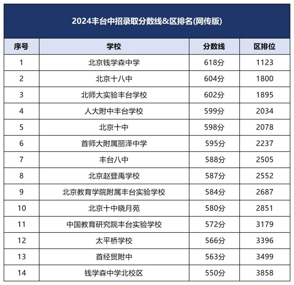 (注:2020丰台区优质高中校录取分数线&区排名为考生和家长分享,仅供2021考生参考)