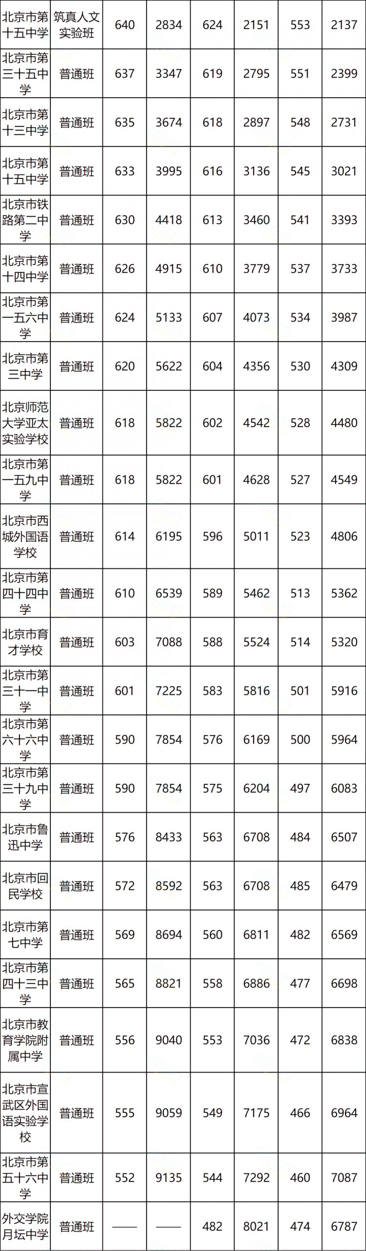2023年北京中考630分以上高中目标校盘点