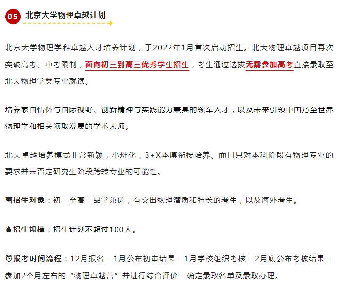 (3)高二:少年班项目报名;学科竞赛奖项冲击;北大化学春季联赛等高校夏令营活动。