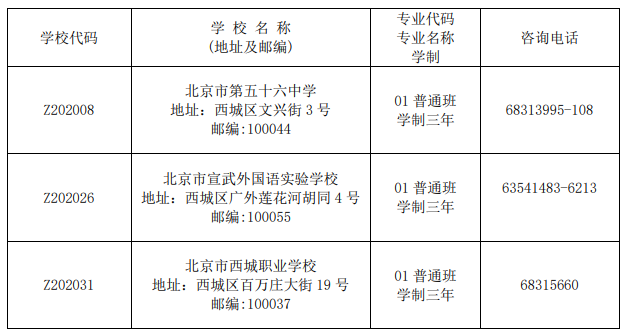 3.北京市西城职业学校(附设普通高中班),登记入学计划100人。
