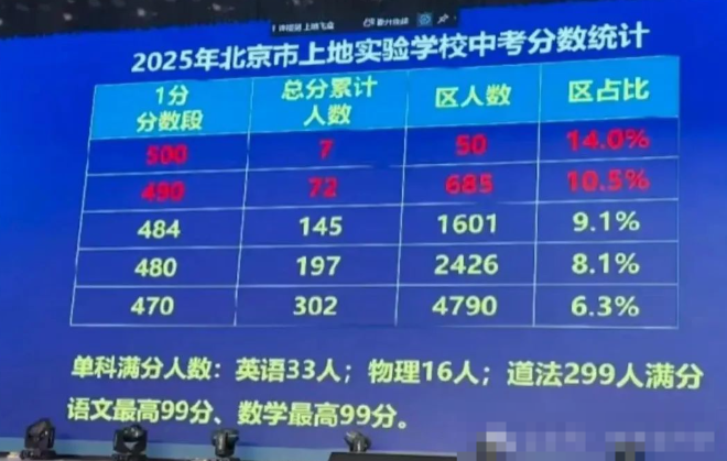 中考成绩500分以上7人,海淀区50人,区占比14%