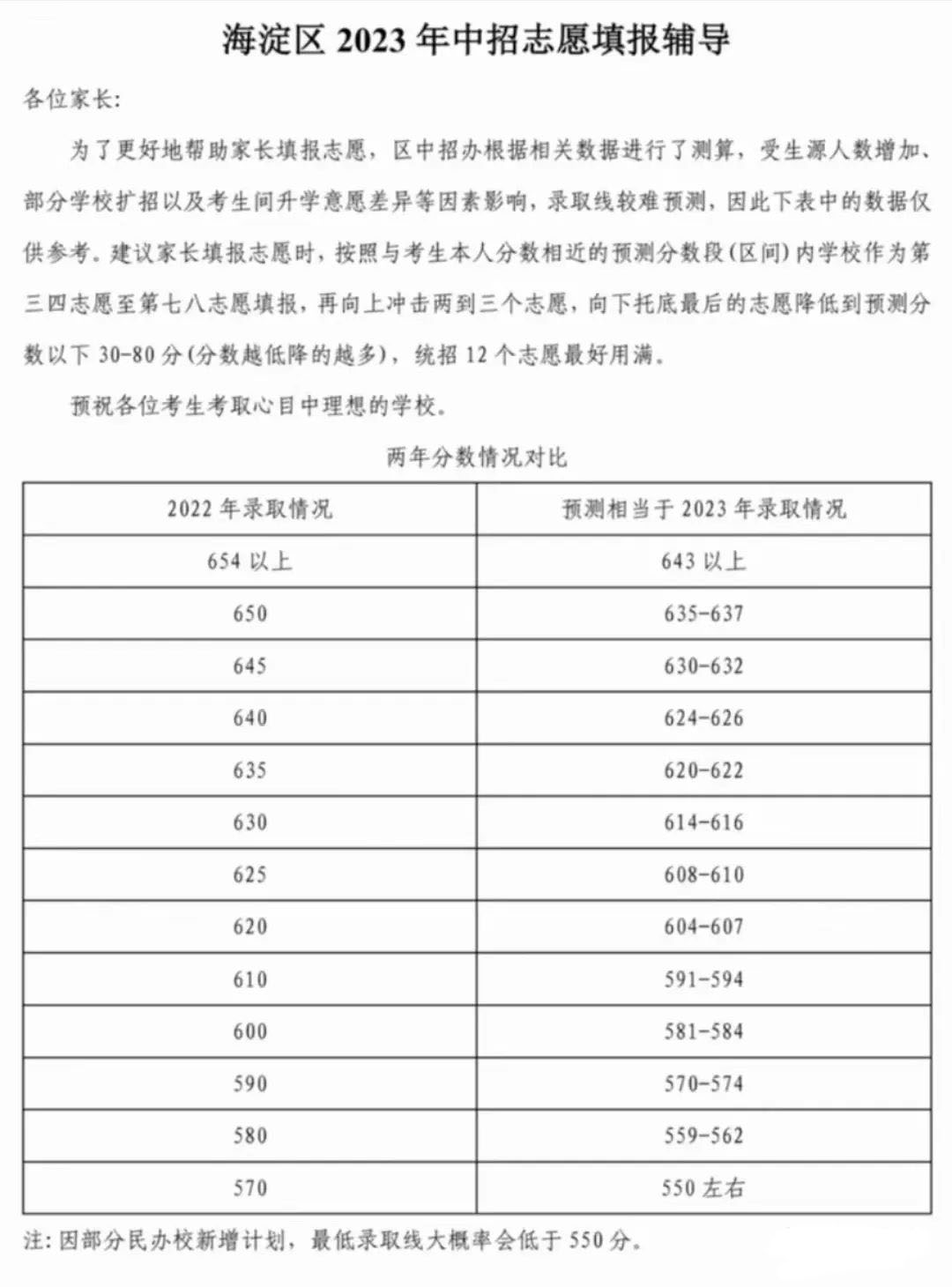 特别说明:上图来自海淀区热心家长分享,今年中考难度上升,分数普遍下降,预计分数线也会相应下调,其他地区考生也可参照上表的换算方式,对应区排名进行志愿填报!