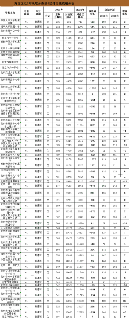 海淀区高中录取分数线&区排名