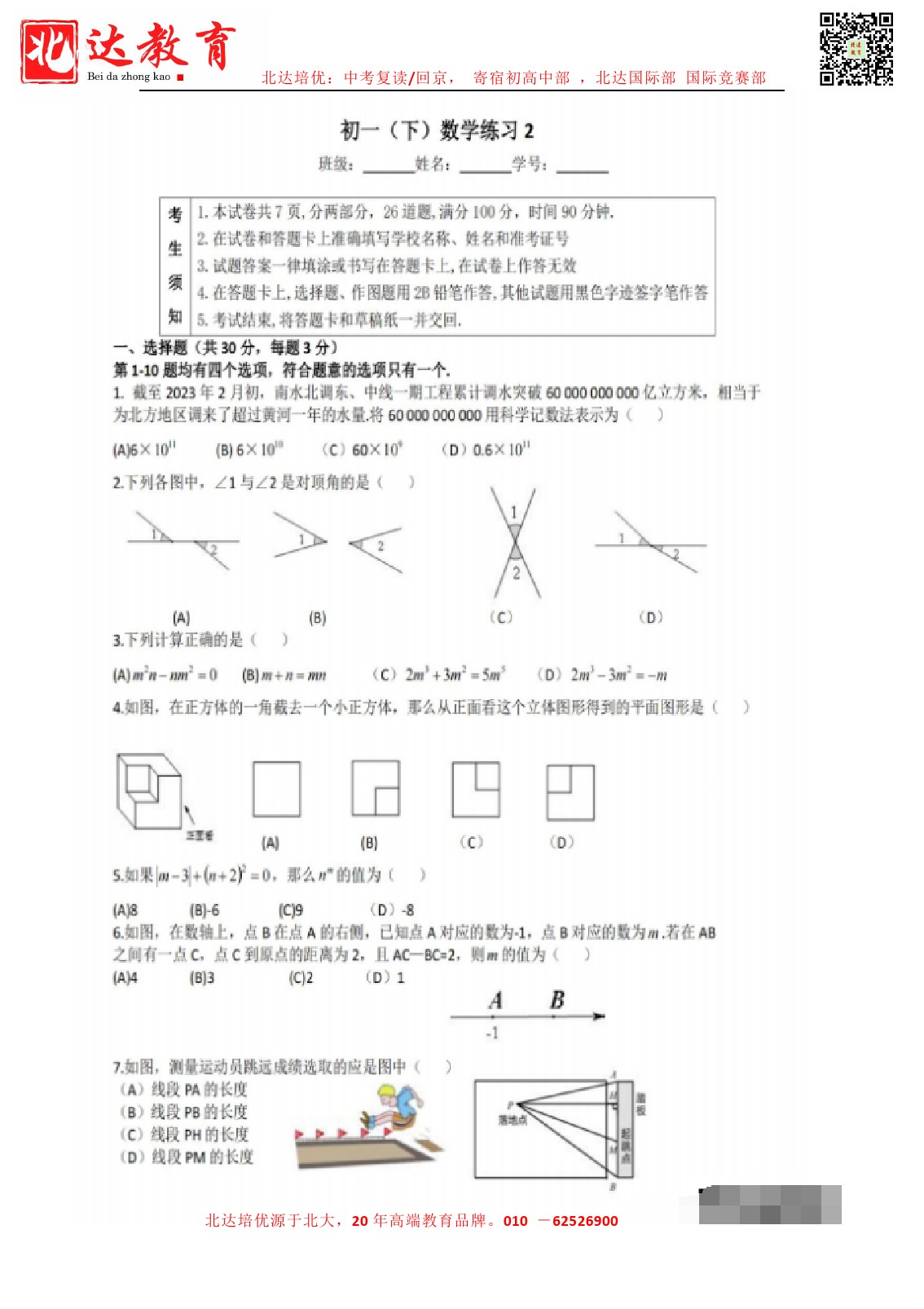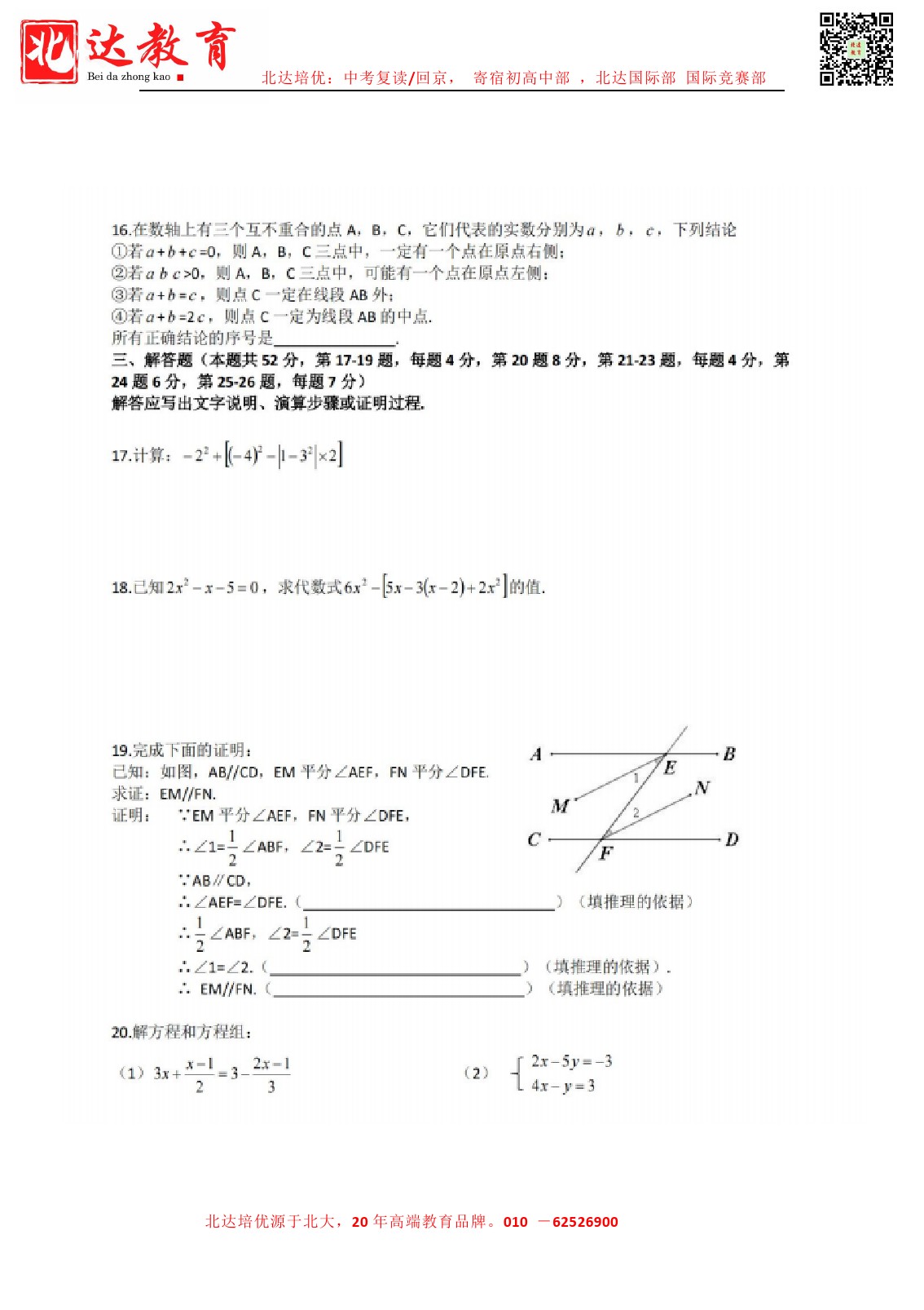 2016-2017学年北京市101中学七年级(下)期末数学试卷含答案