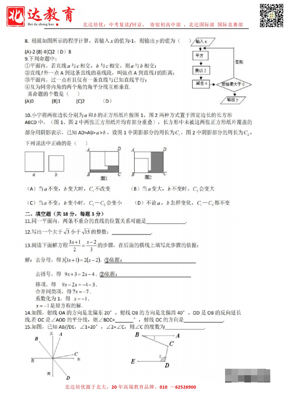 2018-2019学年北京市十一 学校七年级(下)期末数学试卷含答案