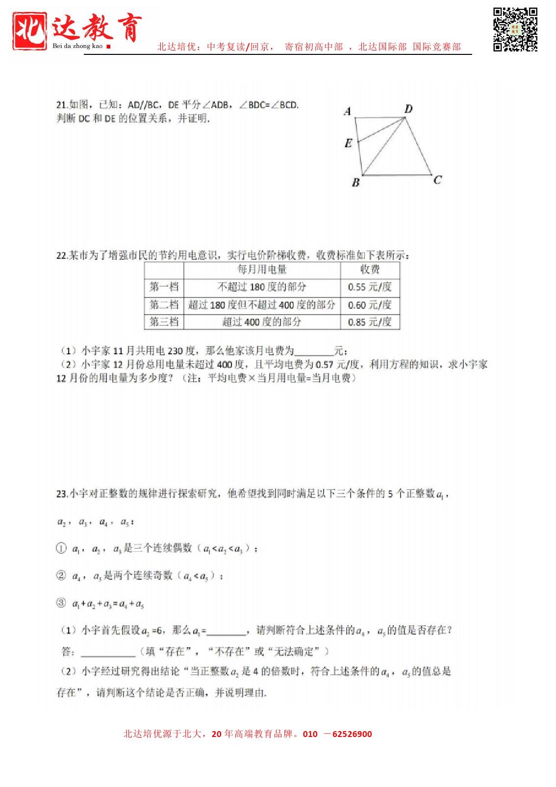 2020-2021学年北京人大附中七年级(下)期末数学试卷含管案
