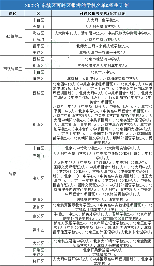 1、城六区是北京优质教育资源的集中地,在北京中考锁区的大环境下,为了向郊区教育薄弱地倾斜,北京城六区在招生计划中会向郊区进行跨区招生,通常跨区途径包括:市级统筹,校额到校等。