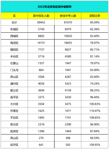 1、上述数据来源于北京市教委2022年发布的初二在校生人数(即现初三年级),准确数据以更新发布为准。